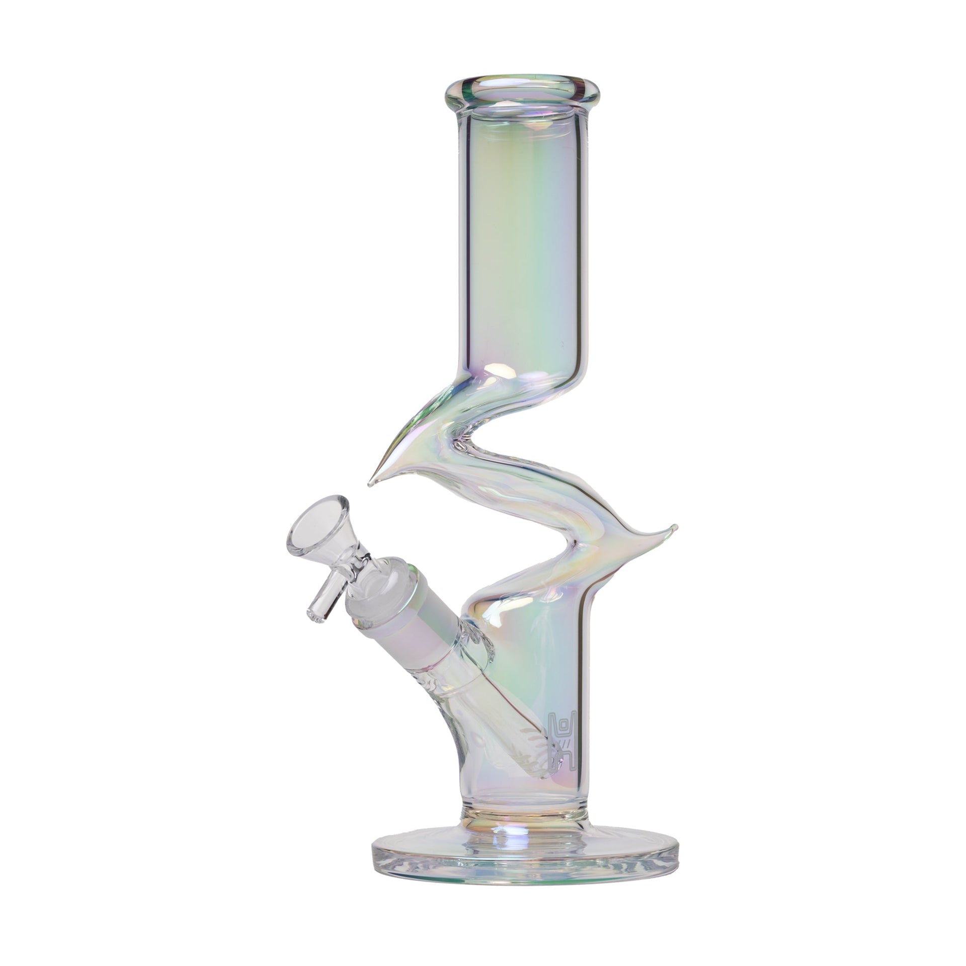 The Human Grade Zing Water Pipe pairs bold geometry with everyday function. Its distinctive Z-shaped body creates a striking profile, while the iridescent finish shifts in the light for a subtle color-changing effect that stands out in any setup.