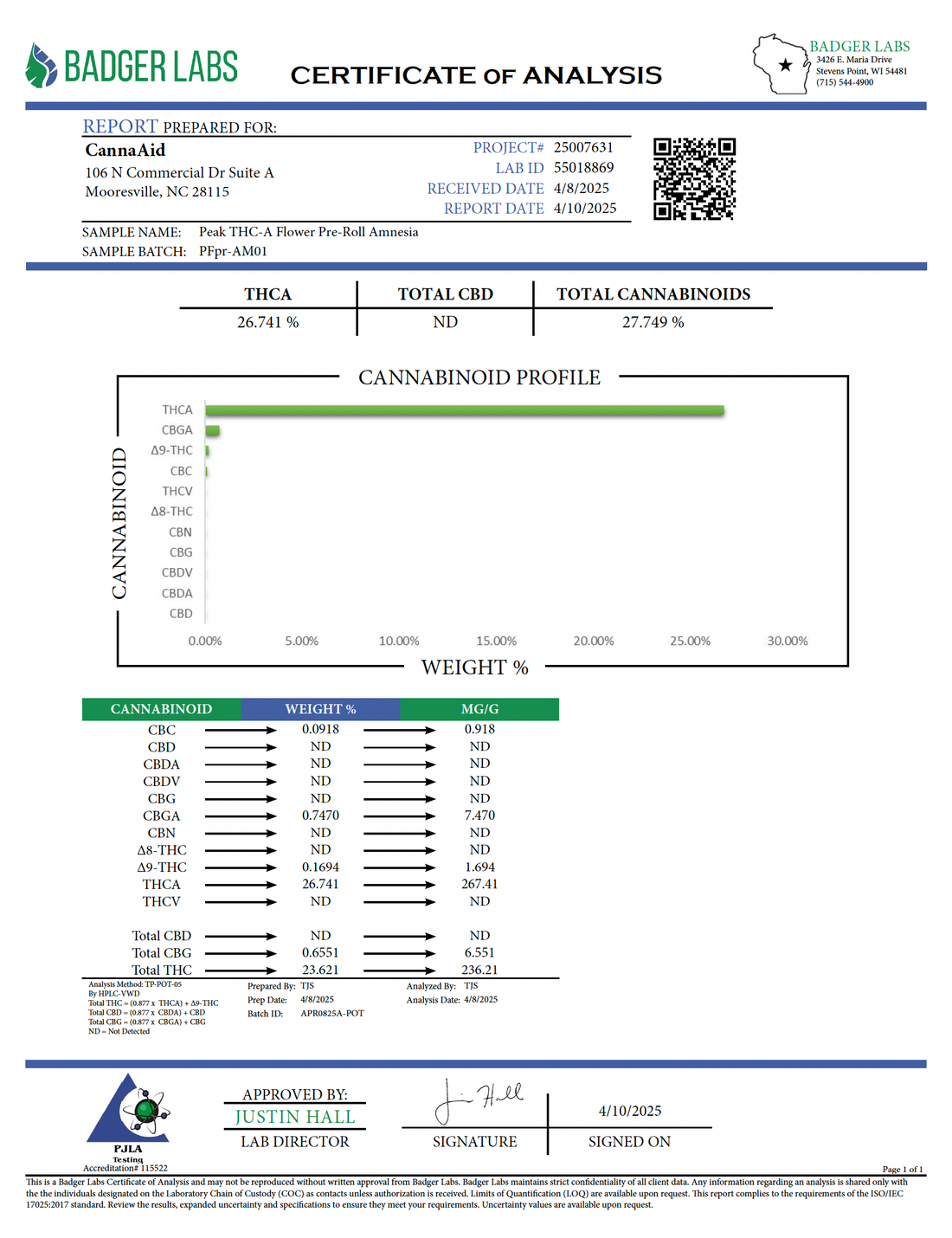 PEAK THC-A 1g Pre-Roll - Amnesia