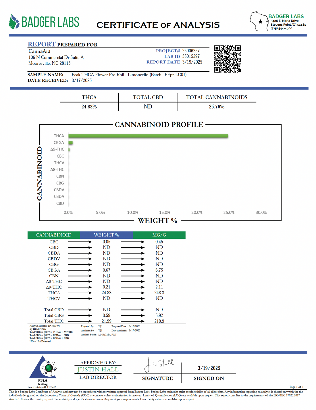 PEAK THC-A 1g Pre-Roll - Limoncello